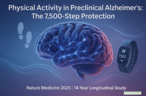 真正受益者是:久坐 + Aβ 陽性者——步數提升對此族群的影響最顯著,可將 9 年認知下降幅度減少 40–54%。